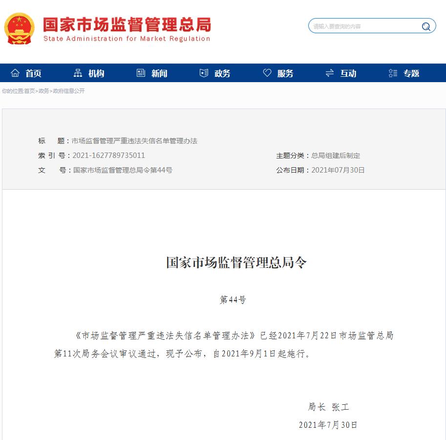 市场监督管理严重违法失信名单管理办法